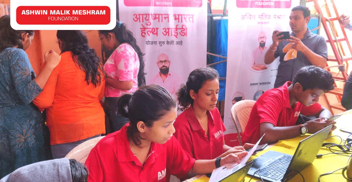 Through the Ayushman Bharat Digital Mission, every Indian will receive a Digital Health Identity Card. This initiative has the potential to transform technology and bring true democracy to healthcare delivery across the country. The purpose behind creating the Abha Card is to free citizens from the challenges of finding the right doctor, making an appointment, paying the consultation fee, visiting the hospital multiple times for a prescription sheet and enabling people to make informed decisions to get the best healthcare. Ashwin Malik Meshram Foundation in association with Capt. Rakesh Coelho and Hemang Jangla organised an Ayushman Bharat Health Card Camp at Sai baba Mandir, Goregaon. 150+ beneficiaries were registered in this camp.