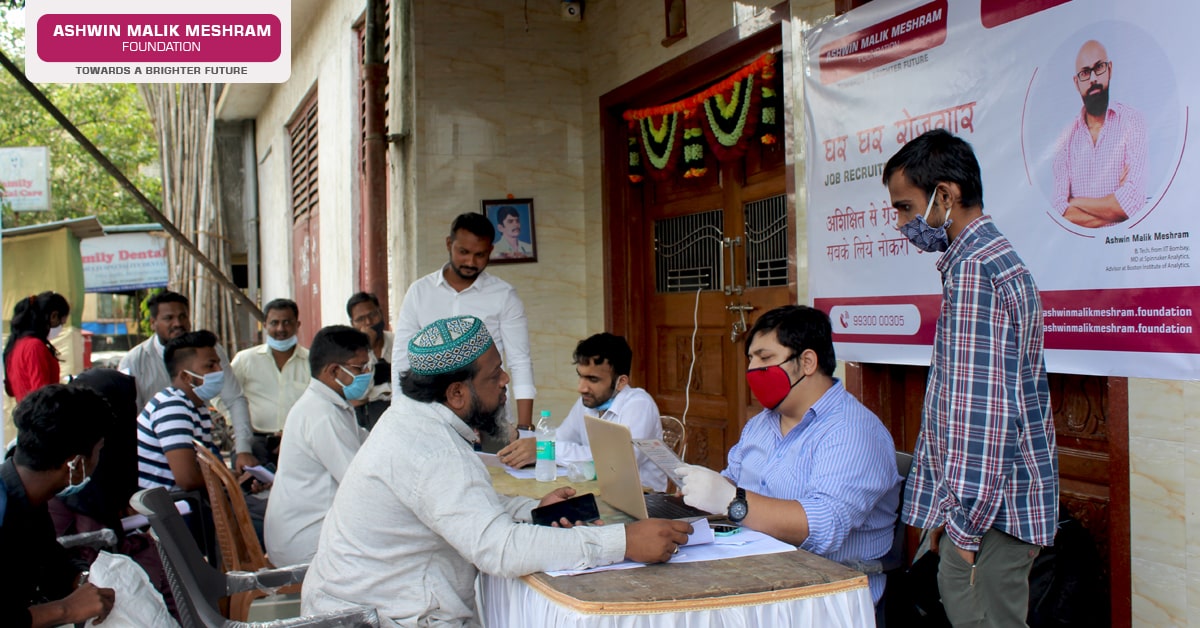 To facilitate job opportunities to the locals, Ashwin Malik Meshram Foundation along with Jai Hind Seva Association organized a Job Recruitment Drive in Kurla which took place on 26th September 2020. The drive saw a turnout of over 140 candidates who applied for different types of roles at our partner organizations.
